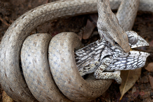 | Mimophis mahfalensis killing a chameleon in Madagascar |